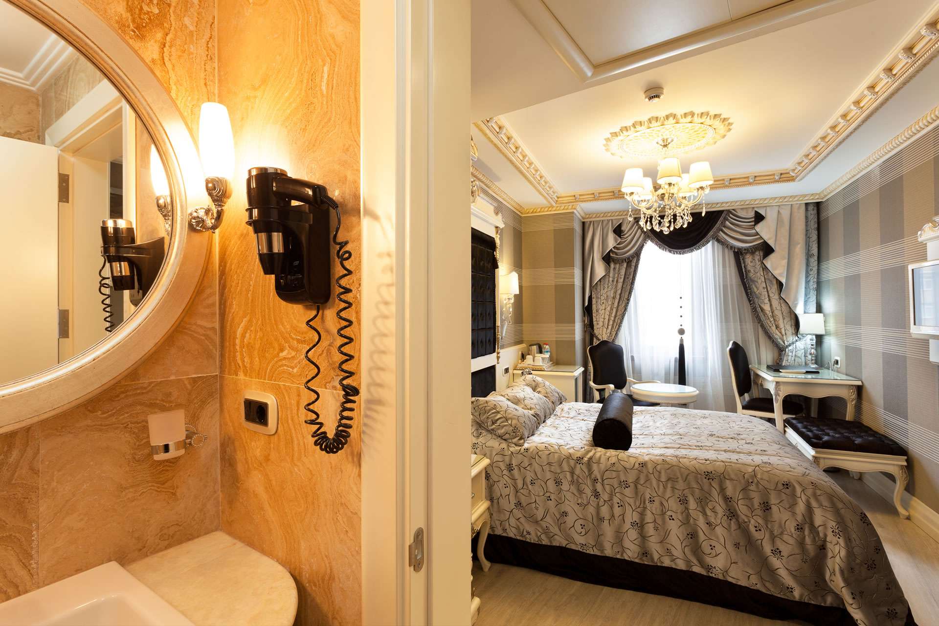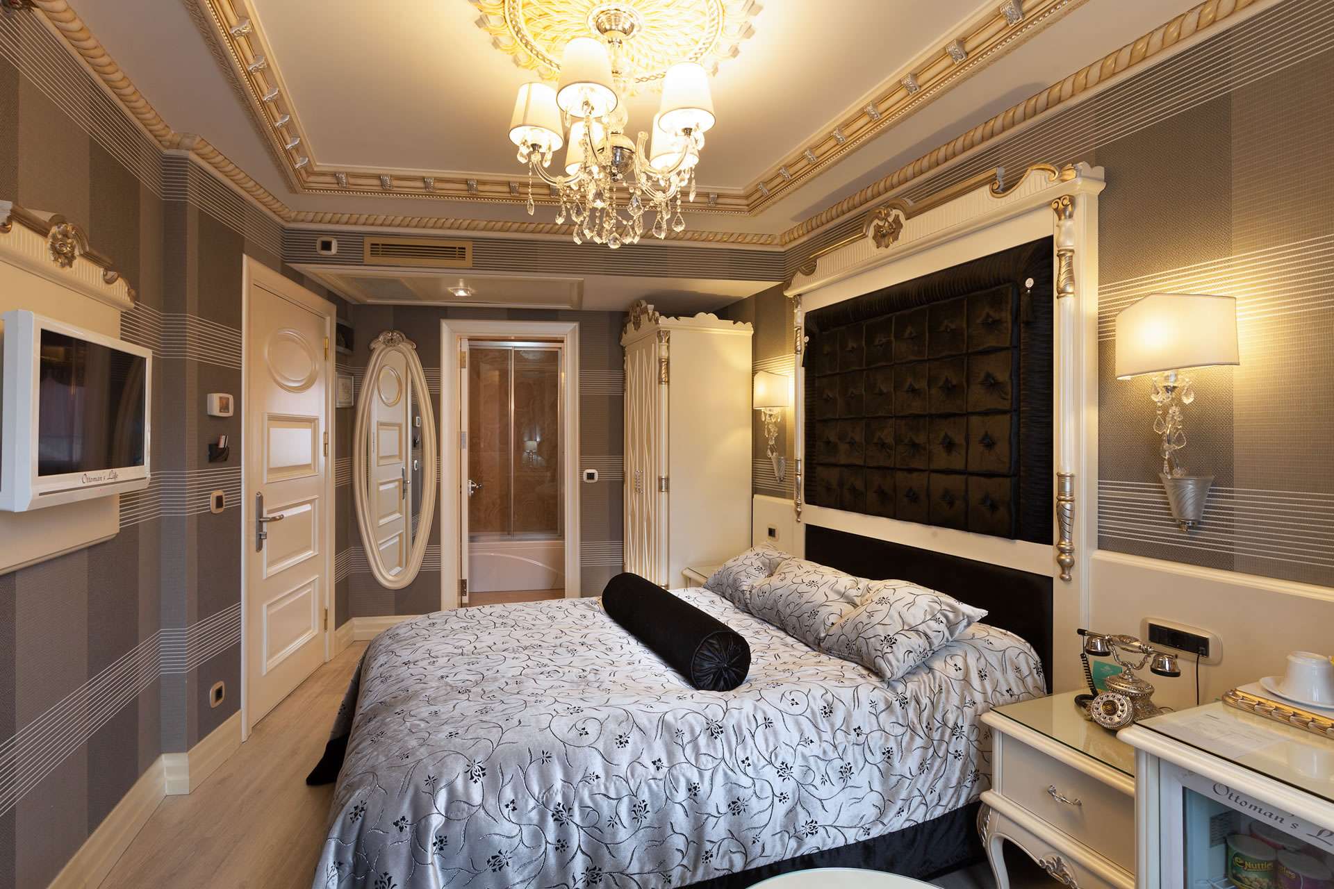 Tv with European Satellite Channels, Direct Dial Phone, Wireless Internet Connection, Air Conditioner, Laptop Size Safe Box, Minibar, Coffee & Tea Maker, Private Bathroom, Shower, Phone in Bathrooms, Hair Dryer, Slippery, Wake Up Service, Pillow Menu, Turkish Delights at Check In, Baby Cot on Request, The Electricity in the Rooms is 220 volt.